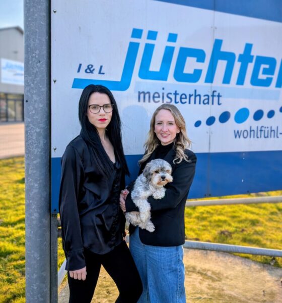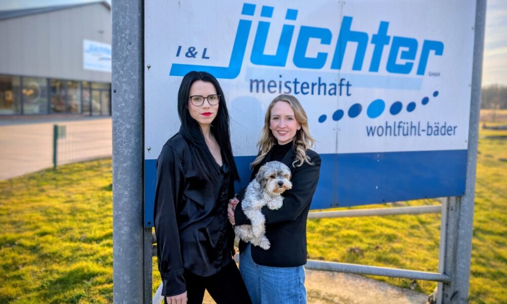 Starke Partnerinnen für ein gesundes Team: Unternehmerin Laura Jüchter (links) und Versicherungsexpertin Heidi Noormann von der Allianz vor dem Firmenschild...