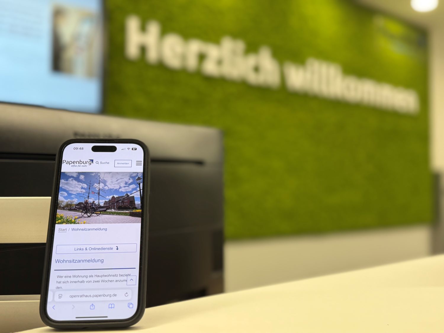 Die Bür­ge­rin­nen und Bür­ger in Papen­burg kön­nen ihren Wohn­sitz ab sofort ganz bequem digi­tal von zu Hau­se aus ummel­den. Mit der neu­en elek­tro­ni­schen Wohn­sitz­an­mel­dung ent­fällt der Gang zum Amt – lan­ge War­te­zei­ten gehö­ren damit der Ver­gan­gen­heit an. Die Stadt Papen­burg betei­ligt sich an einem bun­des­wei­ten Digi­ta­li­sie­rungs­pro­jekt, das Ver­wal­tungs­vor­gän­ge schnel­ler, ein­fa­cher und bür­ger­freund­li­cher gestal­ten soll.