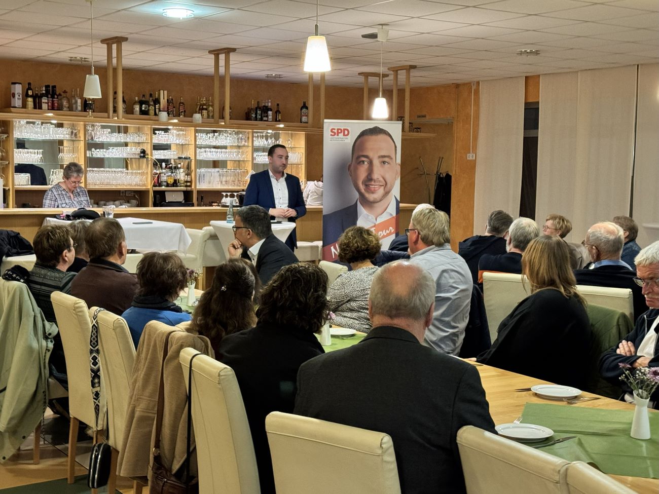 Zu Beginn berichtete Bloem über seine Arbeit im Landtag und aktuelle Entscheidungen auf Landesebene. Dabei ging es unter anderem um die Situation bei Volkswagen und der Meyer-Werft, Klimaschutz und E‑Mobilität, Hochwasser- und Küstenschutz, das Krankenhaus Rheiderland, das Schlickprojekt sowie den Nutzen von Windenergie und den regionalen Masterplan. „Wir wissen, dass es nach wie vor große Verunsicherung in der Bevölkerung gibt. Darum müssen wir immer wieder erklären, was wir tun und warum“, betonte Bloem.