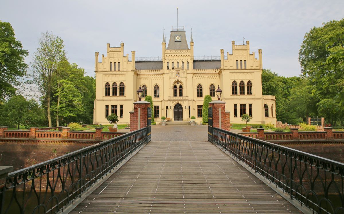 Das neugotische Schloss Evenburg in Leer-Loga: Ein kulturelles Highlight im Landkreis Leer. Die historische Anlage mit ihrem weitläufigen Park zählt zu den beliebtesten Ausflugszielen der Region und bietet regelmäßig exklusive Events und Ausstellungen.