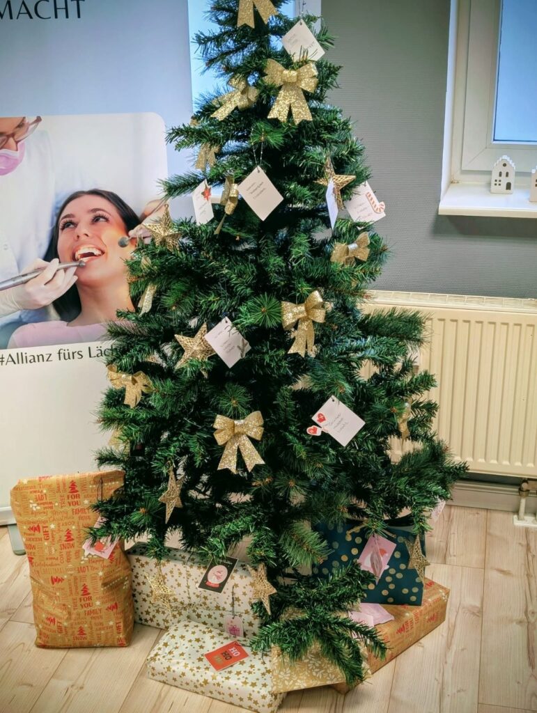 Die ersten Pakete liegen schon unter dem Wunschbaum – wer etwas abgeben möchte und kein Geschenkpapier zur Hand hat, kein Problem: Das Team von Heidi Noormann packt die Pakete gerne für euch. Geschenkpapier ist vor Ort vorhanden.