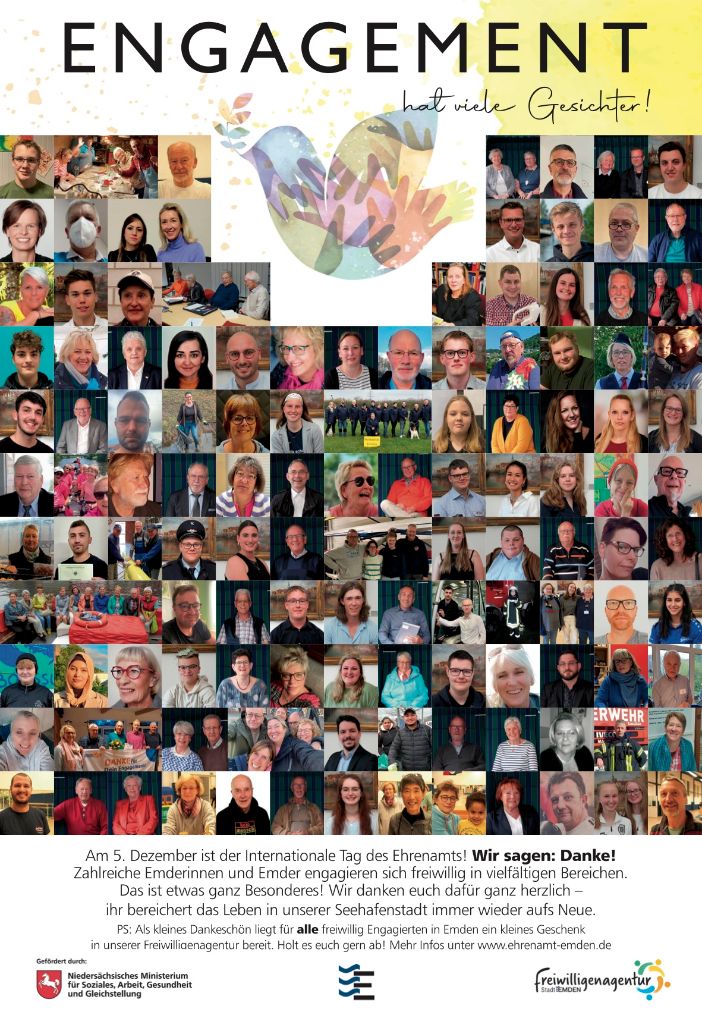 Die Freiwilligenagentur Emden präsentiert zudem die beeindruckende Bandbreite freiwillig engagierter Bürgerinnen und Bürger in einer Ausstellung mit dem Titel “Engagement hat viele Gesichter”. Sven Dübbelde, Leiter der Freiwilligenagentur Emden, betont: “Das freiwillige Engagement in Emden ist vielseitig. Wir möchten mit der Ausstellung zeigen, welche Menschen sich hinter dieser Freiwilligkeit verbergen. Jede Besucherin und jeder Besucher der Ausstellung ist herzlich eingeladen, sich bei uns in der Agentur über die Möglichkeiten des freiwilligen Engagements in Emden zu informieren. Wir beraten gerne.”