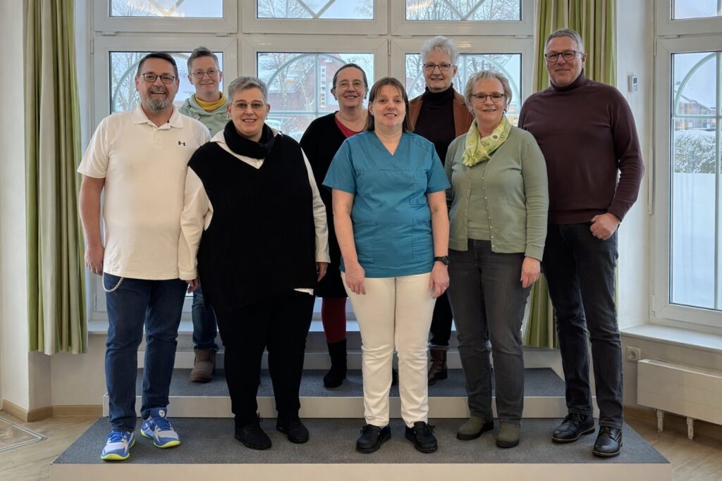 Ein besonderer Moment der Wertschätzung: Gemeinsam mit Heimleiter Christoph Leßnig (ganz rechts) begehen langjährige Wegbegleiter ihr 25-jähriges Dienstjubiläum. Anerkennung für die Treue und das Engagement seit der Eröffnung der Einrichtung gilt. Gewürdigt wurden: Dora-Thea Buss, Anita Rocker, Karin Schüür, Tanja Buss und Wiltraut Severings sowie Nadine und Andreas Remmers.
