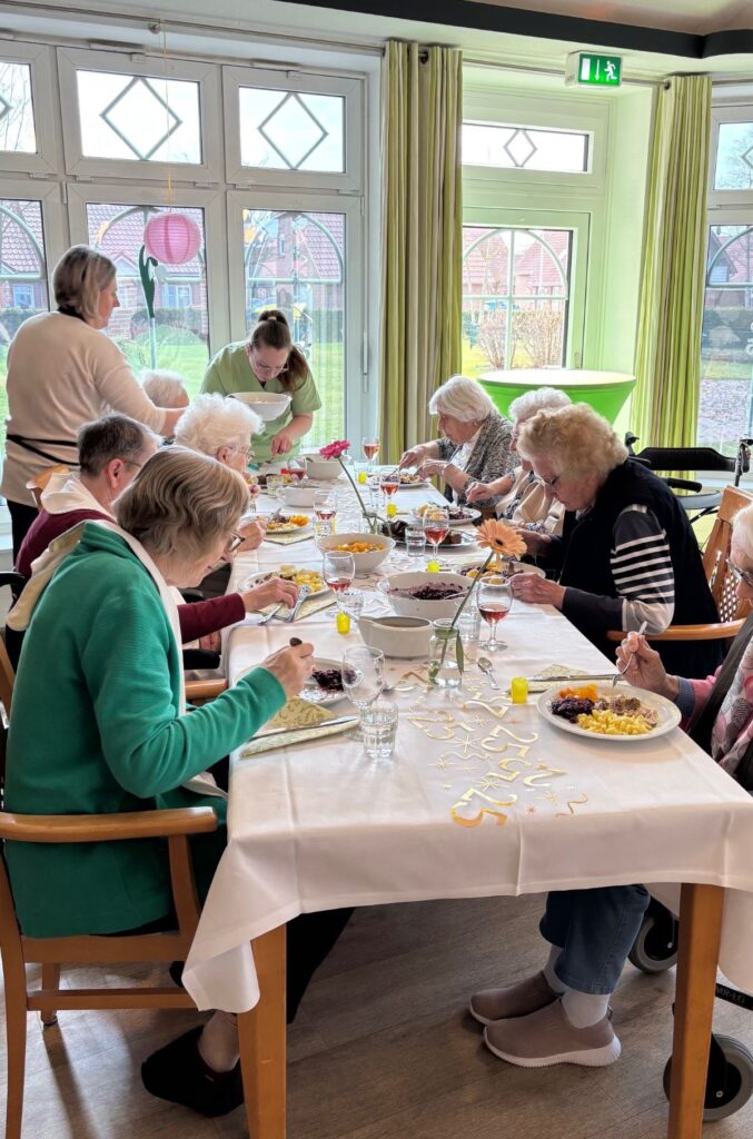 Anlässlich des 25-jährigen Bestehens der Einrichtung erlebten die Bewohnerinnen und Bewohner einen festlichen Nachmittag in Gemeinschaft. Für die passende musikalische Untermalung und gute Unterhaltung sorgten die „Törfmuttjes“, die mit ihrem Auftritt maßgeblich zur feierlichen Atmosphäre beitrugen. Das Jubiläum markiert einen bedeutenden Meilenstein in der Geschichte des Hauses, das seit einem Vierteljahrhundert ein fester Ort der Begegnung in Veenhusen ist.