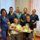Freude im Klinikum Leer (v.l.n.r.): Rhiannon Margolis (Hebamme), Günel Mammadzada (Oberärztin), Jessica Schilling (Gesundheits- und Kinderkrankenpflegerin), Ernesto Giron Garcia (Oberarzt), Sabine Kellner (Oberärztin) sowie Jessica und Paul Fesenfeld mit ihrem Neujahrsbaby Thamara Mila Skyda.