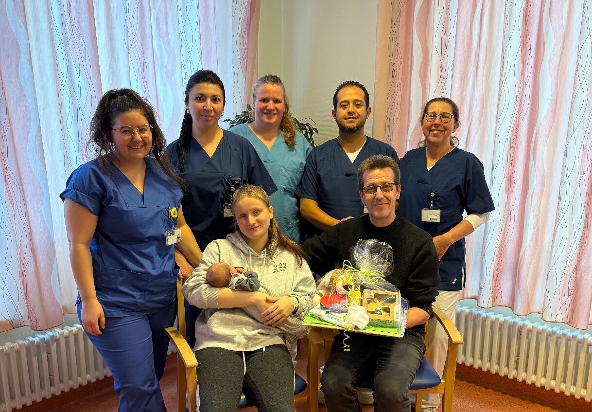 Für die frischgebackenen Eltern hätte das Jahr nicht schöner beginnen können. Zur Feier des Tages überreichte das Team der Geburtshilfe der Familie ein kleines Präsent als bleibende Erinnerung an diesen außergewöhnlichen Geburtstag.