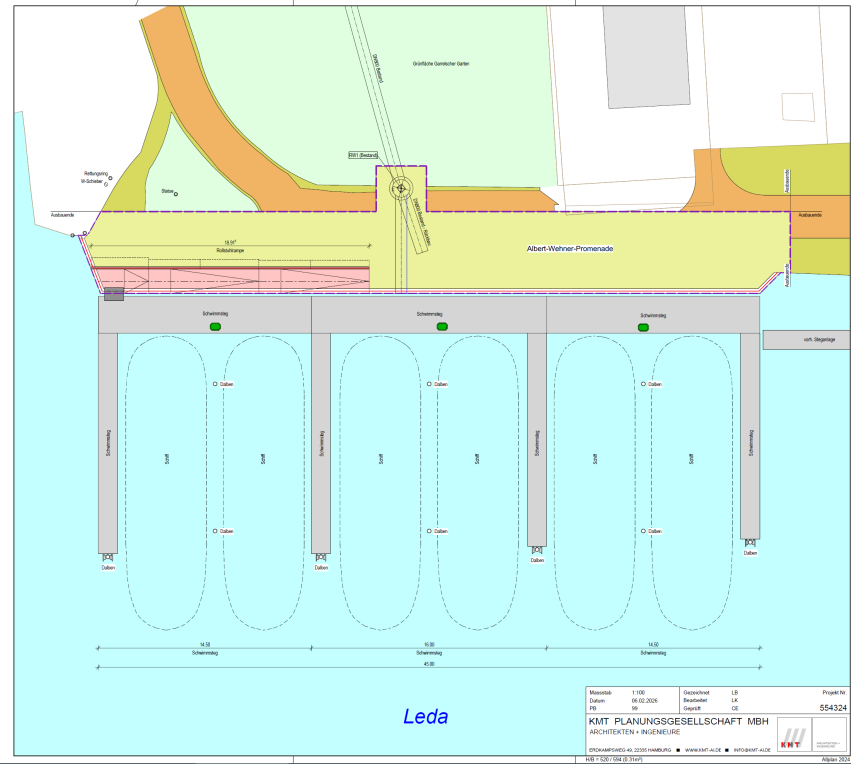 Die in die Jahre gekommenen und aufgrund von Mängeln bereits gesperrten Holzsteganlagen gehören bald der Vergangenheit an. Sie werden durch eine moderne, 45 Meter breite Schwimmsteganlage ersetzt. Diese bietet künftig Platz für sechs Museumsschiffe und wertet das maritime Bild des Hafens deutlich auf.