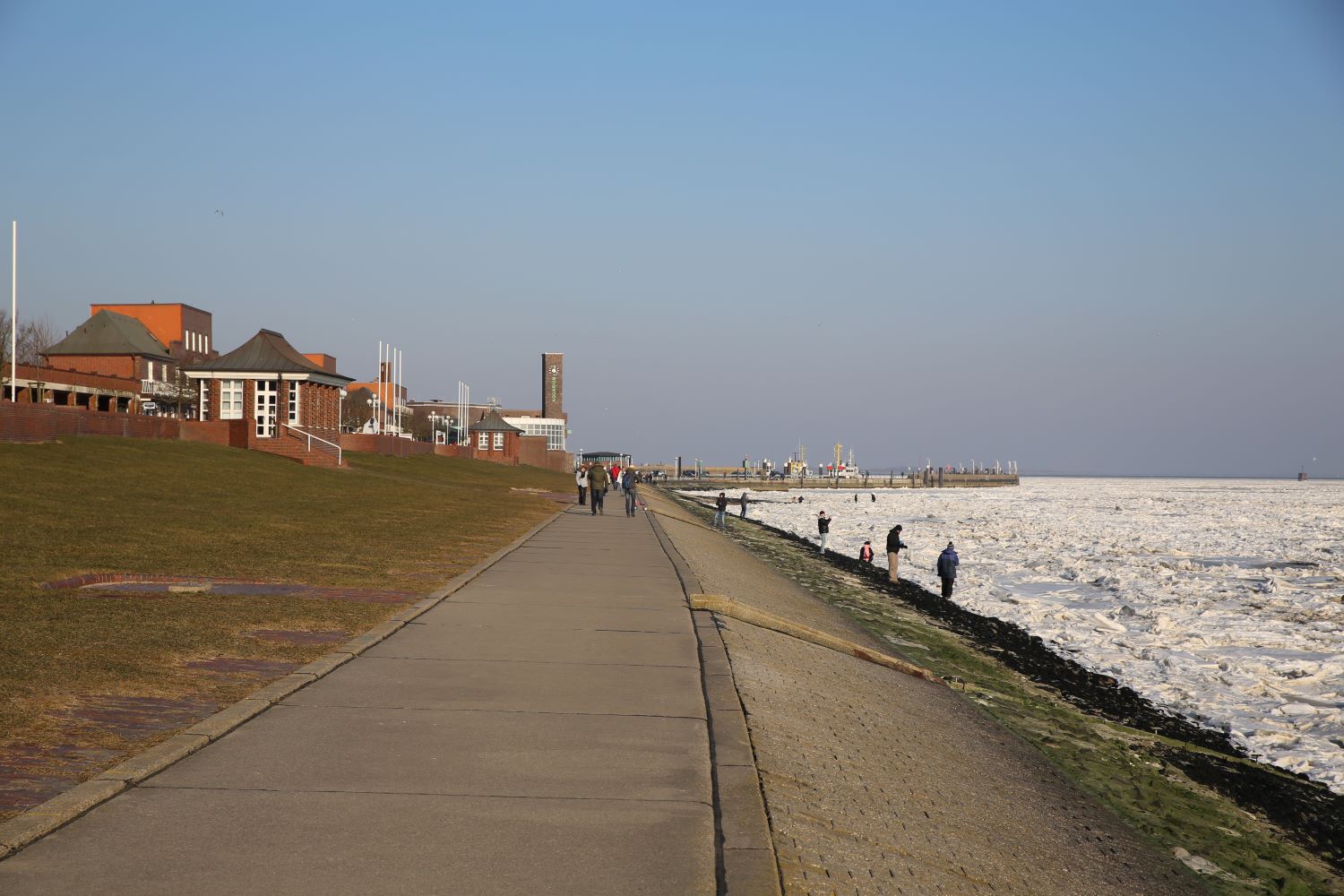 Winteridylle am Südstrand: Während Eis die Nordsee bedeckt, warnt der neue Klimarisikoindex vor der Zukunft. Wilhelmshaven gilt bundesweit als die am stärksten vom Klimawandel bedrohte Region. Foto: Ingo Tonsor @LeserECHO