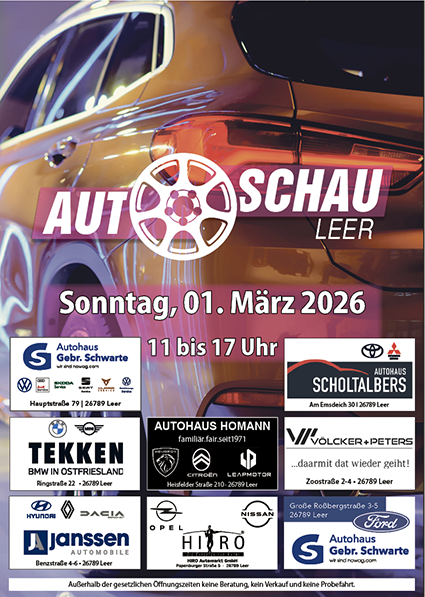 Am Sonntag, den 1. März 2026, verwandelt sich Leer wieder in ein Mekka für Mobilität. Von 11:00 bis 17:00 Uhr öffnen acht renommierte Autohäuser ihre Türen zur alljährlichen Autoschau. Das Event bietet einen umfassenden Überblick über die aktuellen Trends der Branche – von hocheffizienten Verbrennern bis hin zur modernen Elektromobilität.
