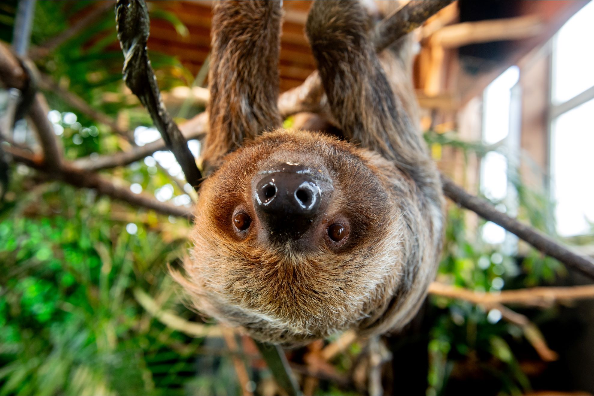 Entspannte Momente in der Tropenhalle: Die Faultiere Frieda und Freddy gehören zu den besonderen Bewohnern im Aquarium Wilhelmshaven. Meist lassen sie sich beim Ruhen hoch oben in den Ästen beobachten und bieten einen ruhigen Gegenpol zum bunten Treiben der Unterwasserwelt.