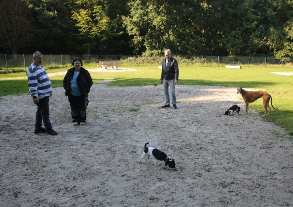 Die Wiese wird von Haltern aus dem gesamten Landkreis geschätzt, da sie nicht nur den Bewegungsdrang der Tiere stillt, sondern auch eine wichtige Plattform für die Sozialisierung darstellt. Hier lernen Hunde im direkten Kontakt Rücksichtnahme und angemessenes Sozialverhalten. Ob temperamentvolle Jack-Russell-Terrier beim Buddeln oder flinke Greyhounds bei rasanten Sprints – die entspannte Atmosphäre sorgt dafür, dass selbst bei hoher Auslastung mit bis zu 20 Hunden ein harmonisches Miteinander herrscht. Während die Vierbeiner wertvolle Kontakte knüpfen, bietet die Anlage auch den Besitzern eine ideale Gelegenheit für den unkomplizierten Erfahrungsaustausch im Grünen.