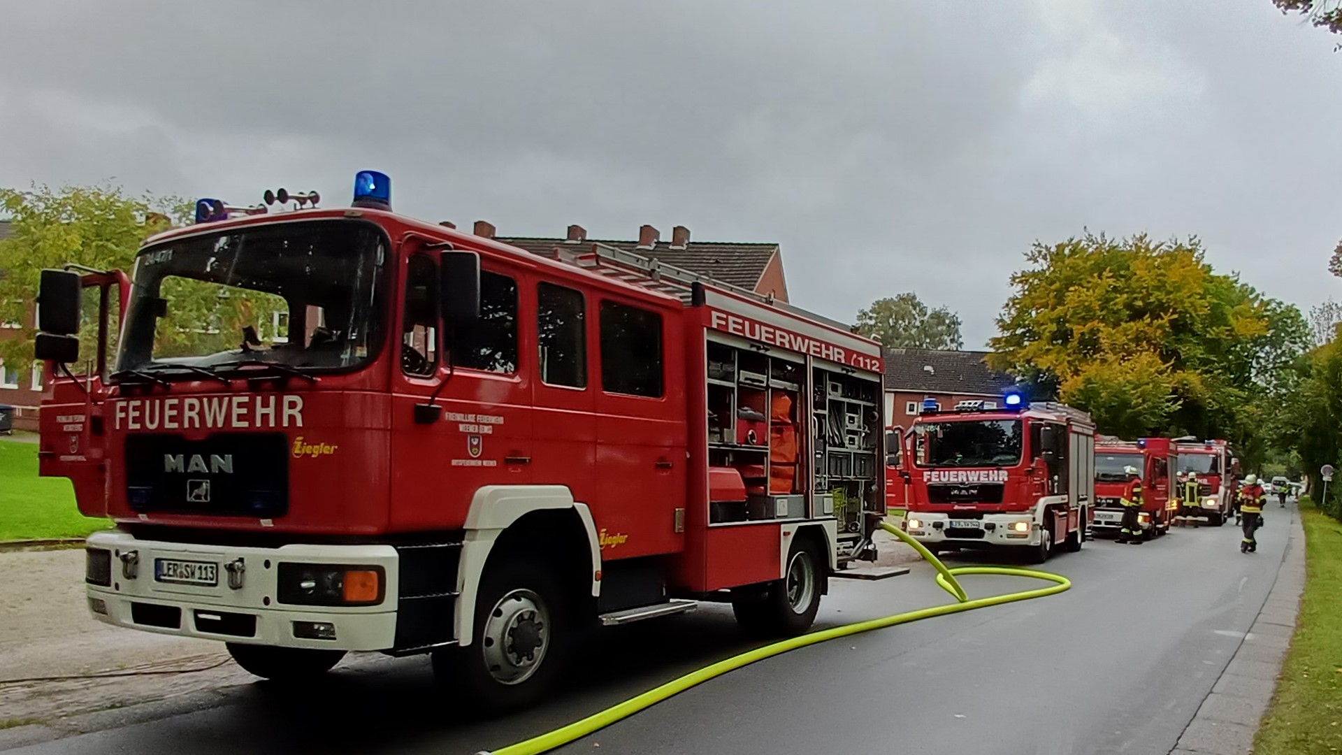 Wee­ner. Am Mon­tag, den 6. Okto­ber 2025, wur­de die Frei­wil­li­ge Feu­er­wehr Wee­ner, unter­stützt durch die Feu­er­weh­ren Hol­thusen und Ober­rhei­der­land, um 16:29 Uhr zu einem Brand in die Frie­sen­stra­ße gerufen.