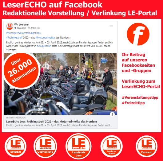 Mediadaten – Facebookseite „Wir Leeraner“ Ein Angebot des LeserECHO-Verlags Die Facebookseite „Wir Leeraner“ ist die reichweitenstarke Social-Media-Plattform des LeserECHO-Verlags für...