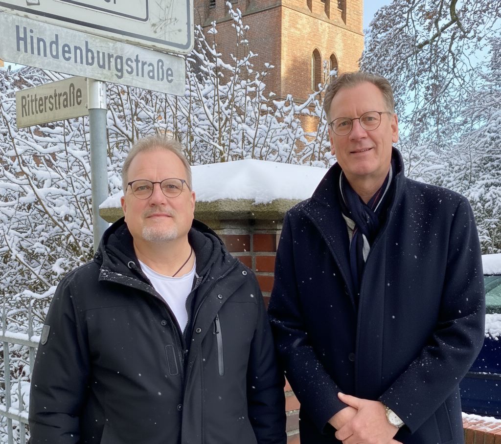 Schulterschluss für den Erhalt: Günter Podlich und Sven Albert von der FDP-Fraktion (es fehlt Susanne Smit) unterstützen die neu gegründete Bürgerinitiative in Loga. Trotz des knappen Ratsbeschlusses vom September 2025 zur Namensänderung setzen sich die Liberalen gemeinsam mit der BI weiterhin für historische Aufklärung vor Ort ein.