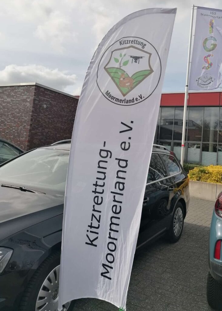 Die Flagge der Rehkitzrettung Moormerland e.V. steht symbolisch für ein starkes Gemeinschaftsprojekt: Der Verein besteht aus engagierten Ehrenamtlichen aus den verschiedensten Fachbereichen, die ihre Freizeit dem aktiven Tierschutz widmen. Ihr gemeinsames Ziel ist es, Rehkitze während der Mahdsaison rechtzeitig aufzuspüren und sie so vor einem qualvollen Tod durch landwirtschaftliche Maschinen zu bewahren. Durch die Bündelung unterschiedlicher Kompetenzen und den Einsatz moderner Technik leistet das Team einen unverzichtbaren Beitrag zur Wildtierrettung in der Region.