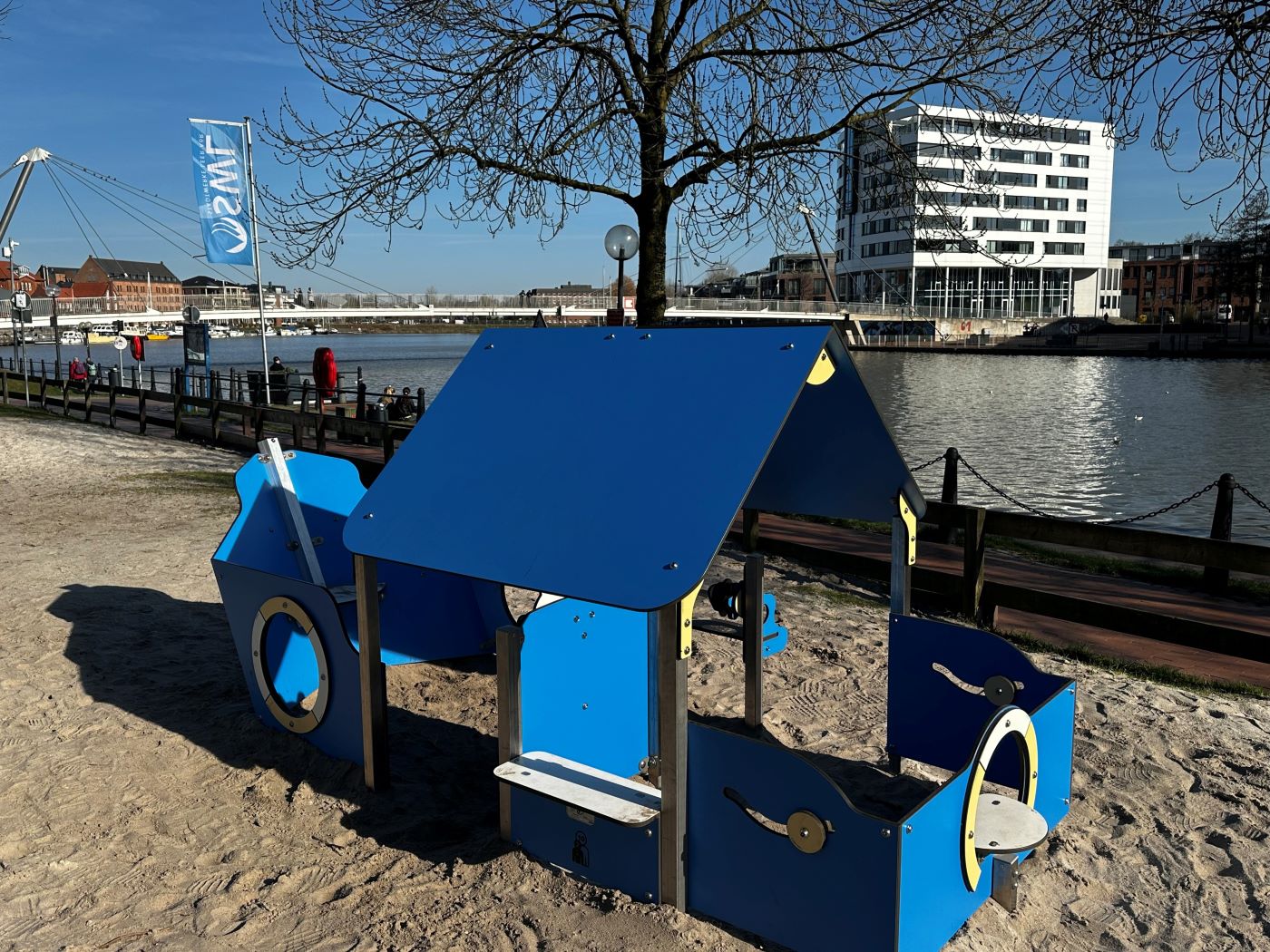Ernst-Reuter-Platz (Thema „Maritim“): Hier laden ein Spielhäuschen, ein überdachtes Spielboot und eine inklusive Federwippe zu Abenteuern auf hoher See ein.