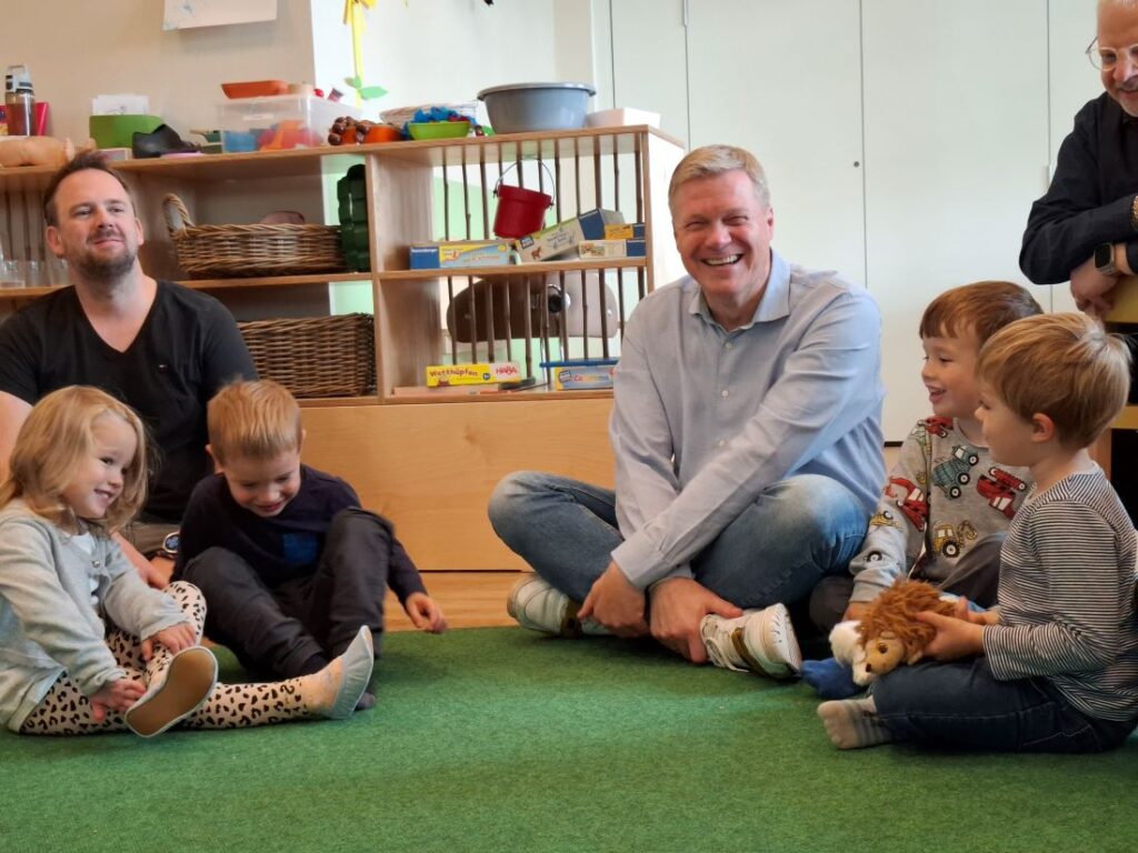 Fröhliche Begegnung im Kindergarten Jübberde: Landtagsabgeordneter Ulf Thiele (CDU) besuchte gemeinsam mit Vertreterinnen und Vertretern der Gemeinde Uplengen und der CDU Uplengen die Einrichtung. Beim morgendlichen Stuhlkreis kamen Politik und pädagogischer Alltag spielerisch zusammen. Im anschließenden Gespräch ging es um naturnahe Bildung, Fachkräftemangel und die Forderung nach einer flächendeckend dualisierten Ausbildung für Kita-Fachkräfte. Foto: Wahlkreisbüro Ulf Thiele