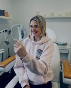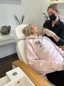 Trotz des star­ken Fokus auf die Gesund­heit bleibt die kos­me­ti­sche Zahn­auf­hel­lung ein tra­gen­der Pfei­ler des Stu­di­os. Hier­bei setzt Thea Witt­ling auf ein Ver­fah­ren, das sich deut­lich von der klas­si­schen zahn­ärzt­li­chen Metho­de unter­schei­det. Der ent­schei­den­de Unter­schied liegt im Wirk­stoff: Durch den Ein­satz von deut­lich weni­ger Was­ser­stoff­per­oxid ist die Behand­lung weit­aus scho­nen­der für den Zahn­schmelz. Unan­ge­neh­me Heiß-Käl­te-Emp­find­lich­kei­ten, die oft mit aggres­si­vem Blea­ching ein­her­ge­hen, tre­ten dadurch viel sel­te­ner auf.