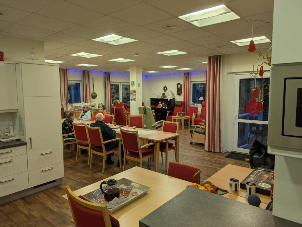 Jeder Tag in der Tagespflege folgt seinem eigenen Rhythmus, geprägt von liebevollen Ritualen und vielseitigen Angeboten. In der lichtdurchfluteten Küche wird gemeinsam gekocht und gelacht – Rezepte werden weitergegeben, Erinnerungen geteilt, neue Lieblingsspeisen entdeckt. Die Kochrunde verbindet, über Generationen hinaus, und schafft eine vertraute Atmosphäre, in der niemand außen vor bleibt. Wenn dann in der Adventszeit Zimtsterne gebacken werden und der Duft von Plätzchen durch die Räume schwebt, fühlt sich das an wie ein Stück Kindheit, das heimlich zurückkehrt.